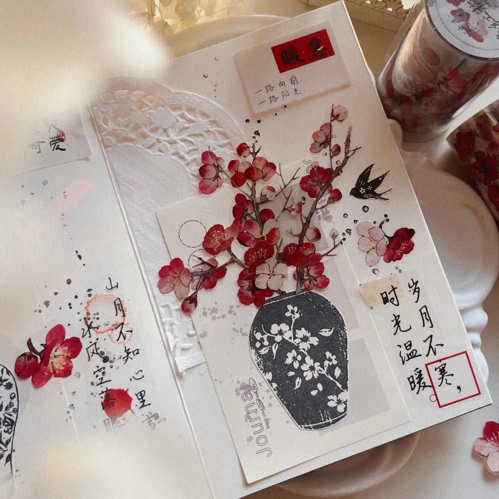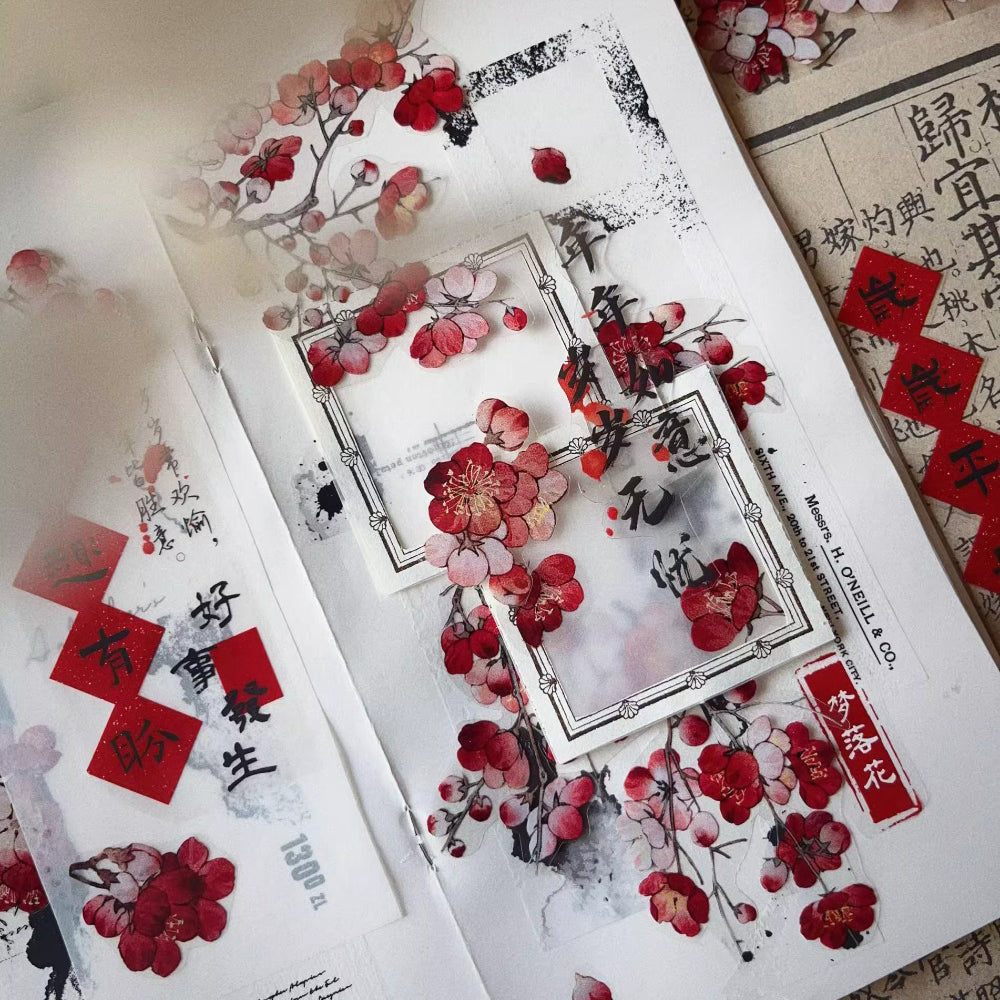 7cm*120cm Dyed Red Plum Vintage Flower PET/Washi tape