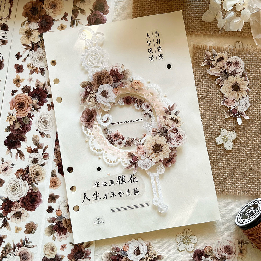 Enjoy creating beautiful decorations with flower Washi / PET Tape. This unique flower-patterned tape is great for scrapbooking and adding personalized accents to any project. making it perfect for scrapbooking or as a decorative addition to any paper craft.