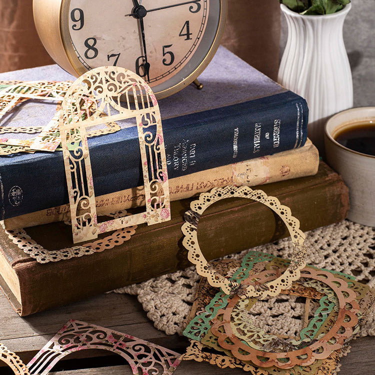 These die cut decorative papers come with love , film, round frame, floral frame and more shapes. They are perfect for scrapbook, junk journal, card, gift package, and more paper crafts.